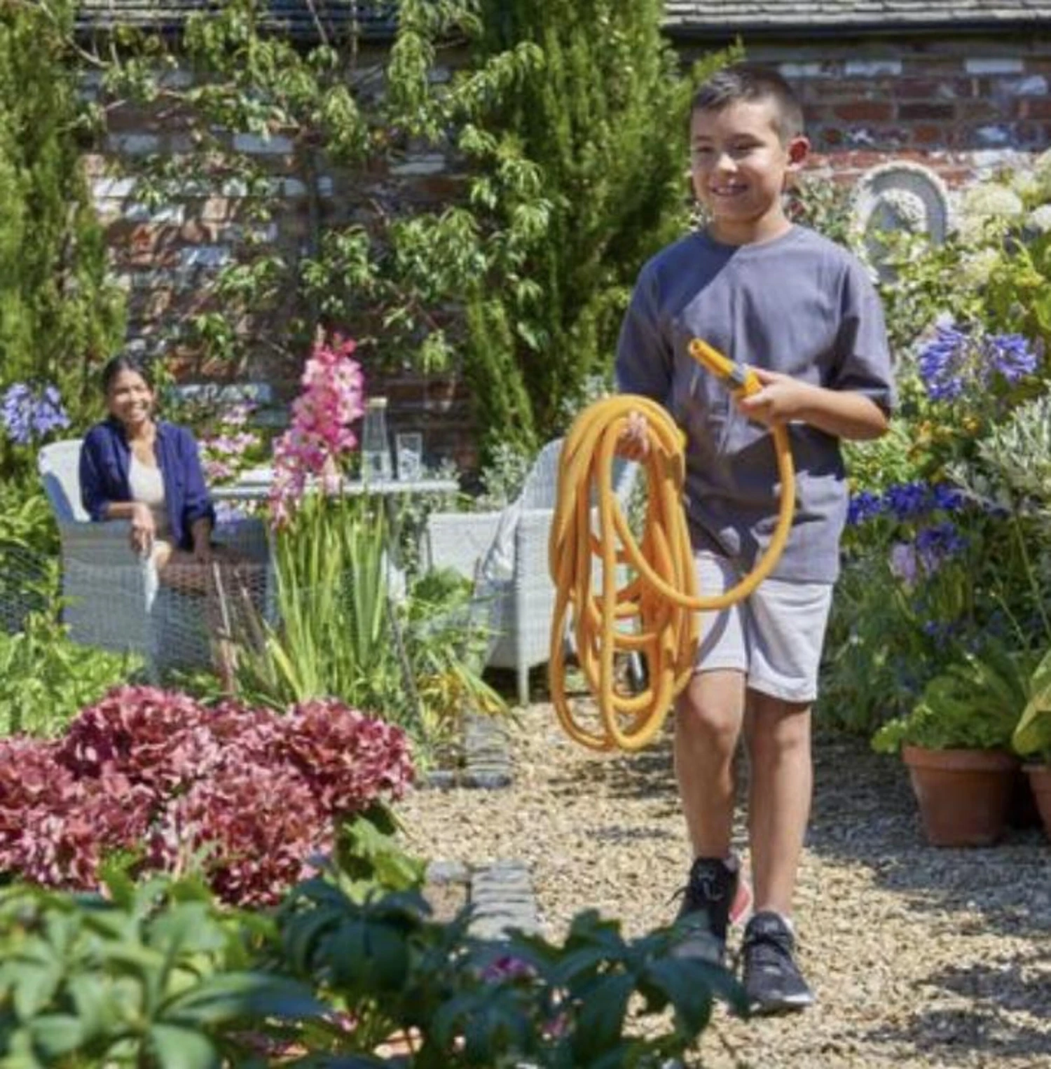 This Wonderhoze expandable hose from Hozelock adds efficiency and quality to your work and makes your daily routine easier. Elastic inner liner: The ultra-elastic inner layer of natural rubber prevents the hose from tearing or bursting. Practical design: The remaining water in the hose can be easily emptied and put to good use by turning the garden sprayer at the desired location in the garden, after which the outdoor hose empties and shrinks to its original size. Long hose: This hose is 12.5 metres long, ideal for small gardens, patios, terraces or balconies. Plus, this garden hose comes complete with fittings, including a universal tap fitting and an adjustable garden sprayer. Specifications Colour: Yellow Material: PVC, fabric Length: 12.5 m Hose diameter: 1.6 cm Expands to 3x its own length Soft fabric outer layer Lightweight Delivery contains: 1 x Nozzle 1 x 1/2″ Tap connector 1 x 3/4″ Tap connector 2 x Coupling with water stop EAN:5010646064217
