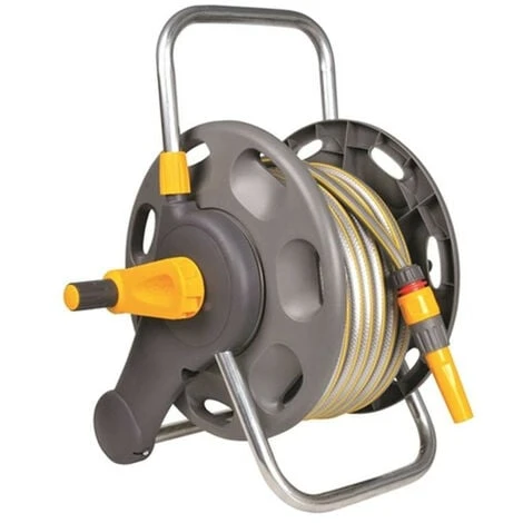 The Hozelock 2431 45m Hose Reel has a small internal drum diameter and an extra-long winding handle, rewinding is easy. The small and compact design, solid axis and robust towing handle enables the hose reel to be manoeuvred with ease, saving you time and effort. It has a wide stance and low centre of gravity to make it very stable and this stops the hose reel from falling over whilst the hose is unwound. The compact size and hard wearing metal towing handle makes movement around the garden a breeze, also extra wide for stability and has been designed so the hose is easy to rewind. Made from the highest quality plastics, it will stand the hard wearing challenge of gardening tasks, time after time. Comes ready assembled allowing you to get straight to work. Designed and made in Great Britain, the Hozelock 45m capacity Assembled Hose Reel extends Hozelock’s heritage of quality, innovative products that are designed for gardeners by gardeners. It comes with a 2 year warranty and like most Hozelock products, a full range of spares are available to extend the life way beyond this. Supplied with 25m of Hozelock braided Starter hose perfect for general purpose use, 2 x Hose End Connectors, 1 x Threaded Tap Connector and 1 x Adjustable Nozzle.