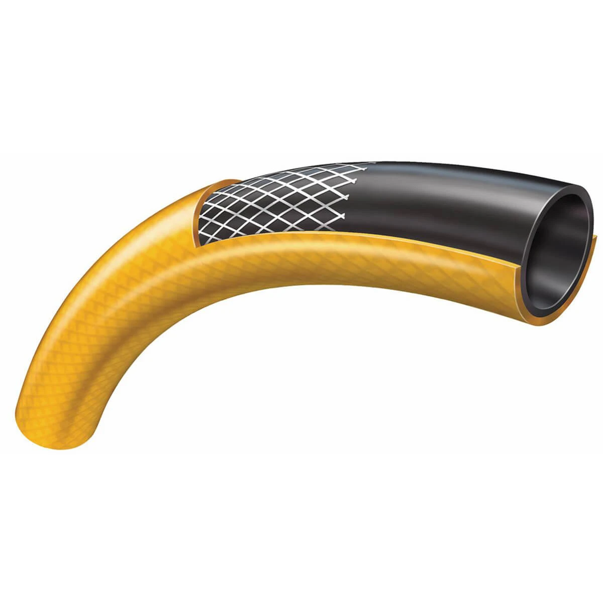 50m of good quality general purpose braided hose. The hose has four layers, a smooth PVC inner layer to allow maximum flow, a thick PVC layer to add strength, a braided polyester layer to stop expansion of the hose and a tough PVC outer layer.