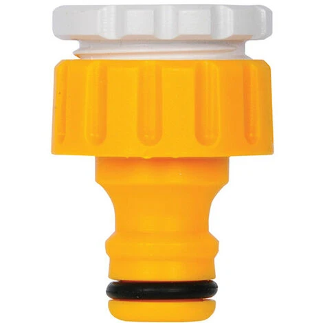 3/4in BSP tap connector suitable for use with 95% of all outdoor taps. Includes a 1/2in adaptor for older taps.