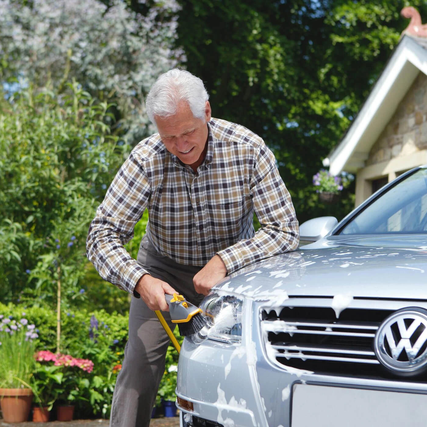 The whole new range from Hozelock makes car cleaning easier. The Short Car Brush Plus is especially designed for cleaning family sizes cars and motor bikes. It comes with flow-through so fresh water is running through all the time.