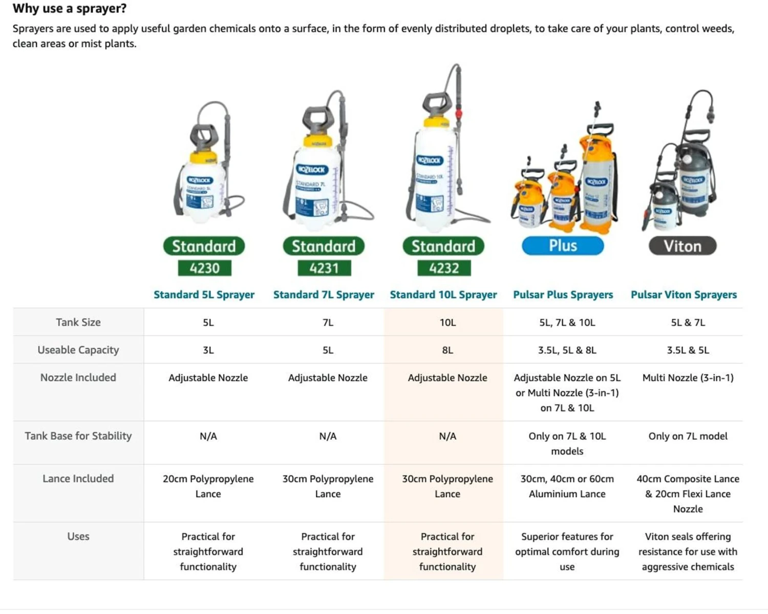The Hozelock Standard Pressure Sprayer is a high quality, convenient multi-purpose sprayer, effective for outdoor use. Easy, Accurate & Cost Effective Application – For use with water-based solutions of insecticides, fungicides, weedkillers and fertilisers. Wide Ergonomic Handle – Makes pressurising the sprayer easy whilst the translucent, graduated bottle aids accurate chemical mixing and dosing. Available in three sizes – 10 Litres (useable capacity is 8 Litres*), Please note, the useable capacity of these sprayers is less than the overall capacity due to needing to provide sufficient air gap for pressurisation of the bottle.